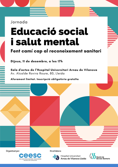 El proper dijous, 11 de desembre, tindrà lloc a Lleida la jornada Educació social i salut mental: fent camí cap al reconeixement sanitari que servirà per presentar, a nivell nacional, el document L’educació social com a professió sanitària així com el posicionament del Col·legi en aquest tema.