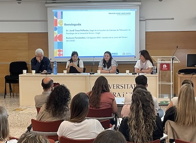 L’acte es va iniciar amb la benvinguda institucional a càrrec del degà de la Facultat de Ciències de l’Educació i la Psicologia, el Dr. Jordi Tous Pallarès, i de Ramona Fernández, membre de la Junta de Govern del CEESC, que van posar en valor la importància de generar espais de debat com el que propiciava la jornada i compartit entre l’acadèmia i la professió.