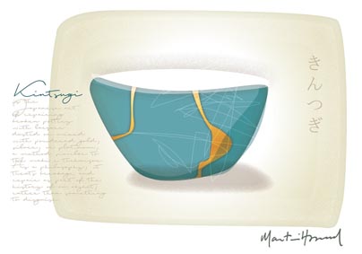 La filosofia que hi ha darrere del mètode japonès ens mostra el valor de la imperfecció, planteja que els trencaments i les posteriors reparacions, formen part de la història d'un objecte i han de mostrar-se en lloc d'ocultar-se, incorporar-se i, a més, fer-ho per embellir l'objecte, posant de manifest la seva transformació i la seva història.