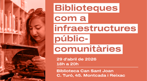 Dins del cicle "Llibres: motors de cultura comunitària i economia social i solidària", s'emmarca aquesta activitat que proposa un espai de reflexió col·lectiva sobre el paper de les biblioteques públiques com a infraestructures publicocomunitàries, capaces d’articular cultura i economia de proximitat en el seu entorn.